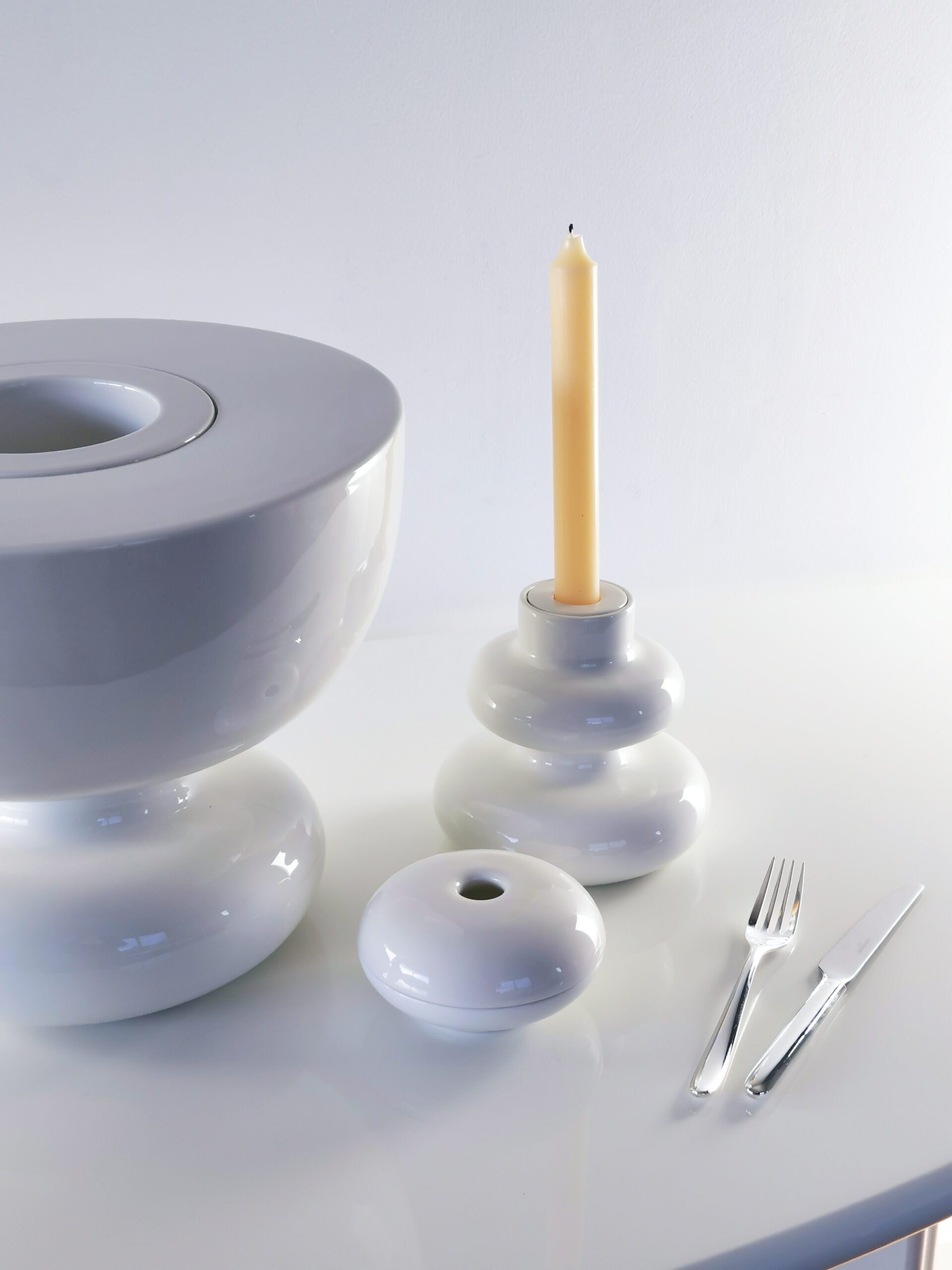Ce bougeoir est également disponible en noir mat, blanc, rose, lilas et vert.