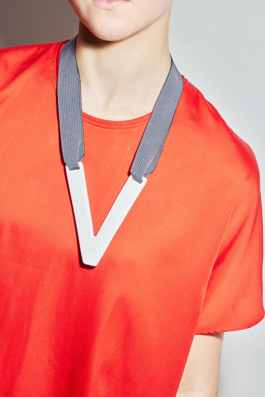 COLLIER COL V EN CÉRAMIQUE ÉMAILLÉE ET GROS GRAIN