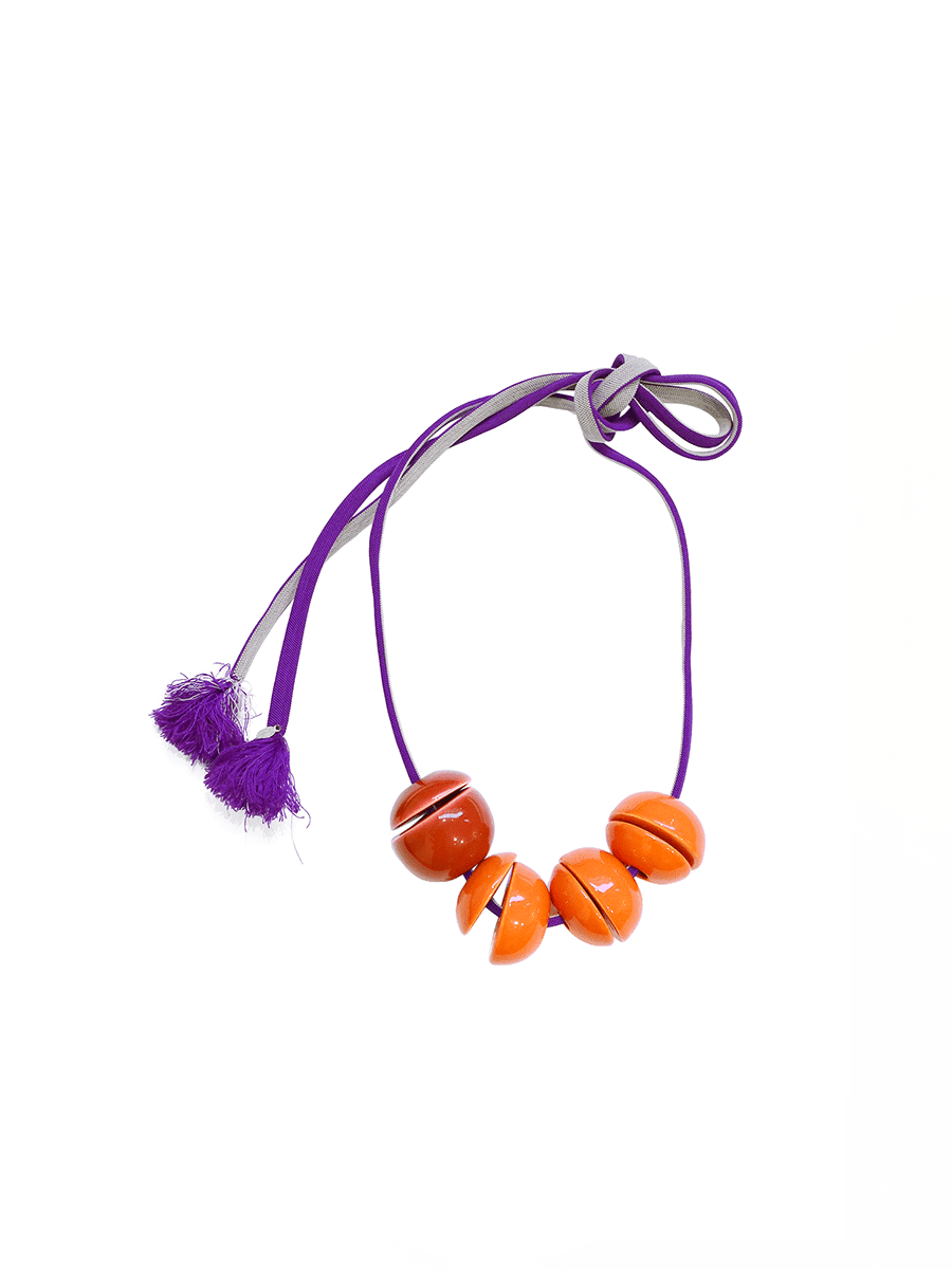De retour d’une résidence à la Villa Kujoyama, à Kyoto, au Japon, Marion Vidal vous propose une nouvelle série de colliers où s’entremêlent ses perles en céramique et des cordes d’obijime* rapportées du Japon. Chaque pièce est unique, retraçant le parcours de la marque et ouvrant sur de nouveaux champs des possibles.