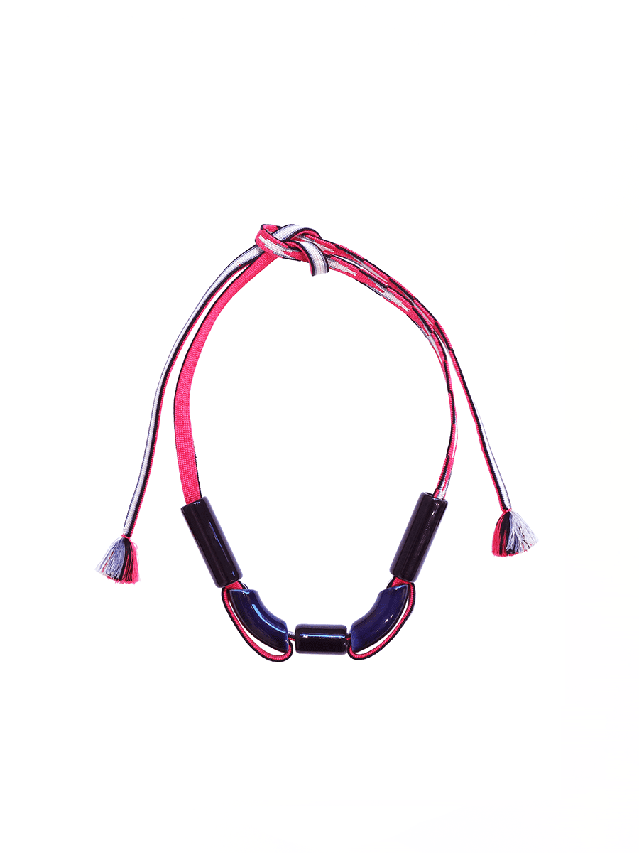 De retour d’une résidence à la Villa Kujoyama, à Kyoto, au Japon, Marion Vidal vous propose une nouvelle série de colliers où s’entremêlent ses perles en céramique et des cordes d’obijime* rapportées du Japon. Chaque pièce est unique, retraçant le parcours de la marque et ouvrant sur de nouveaux champs des possibles.