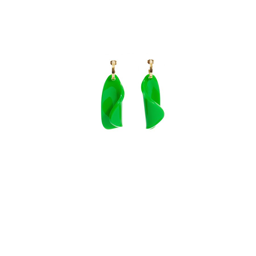 Le pendentif en plexiglas est découpé, sculpté et thermoformé. Il est monté sur une créole en laiton doré 24 carats. La pétale est dissociable de sa créole. Il est donc possible de porter la créole seule.